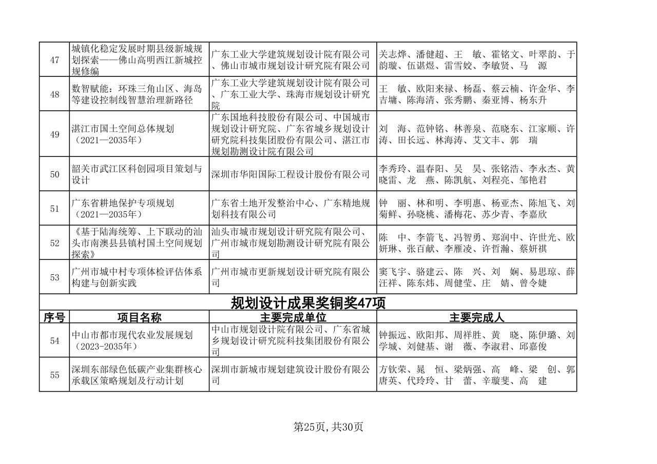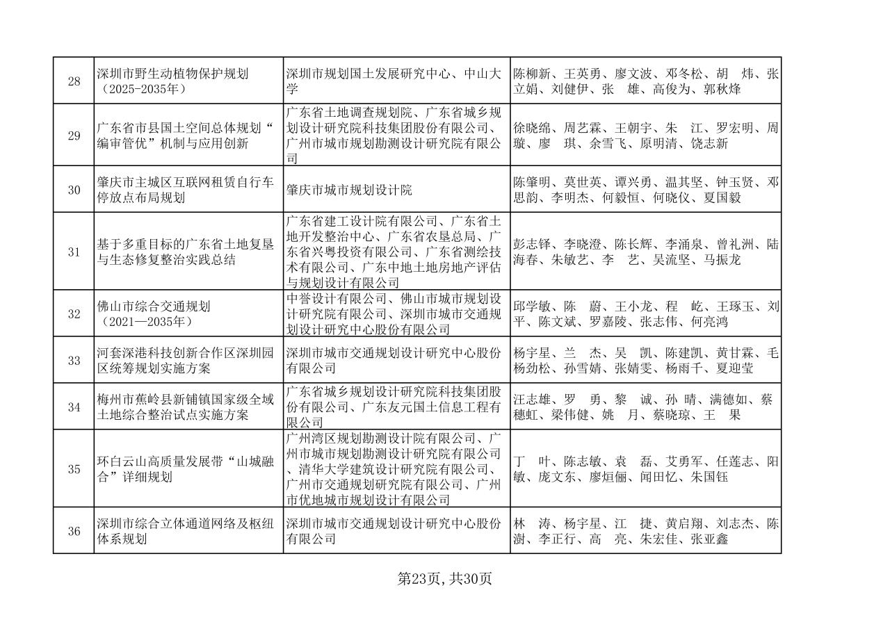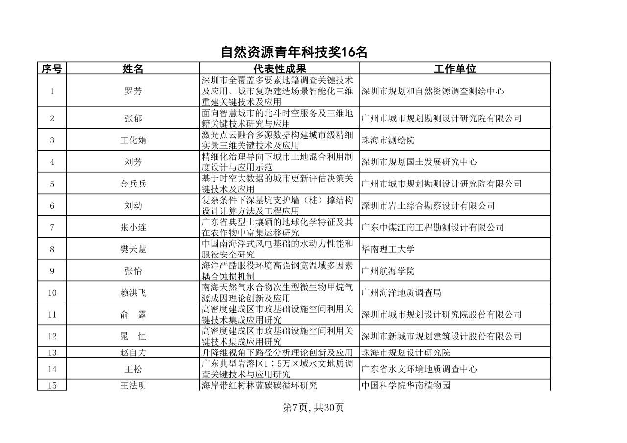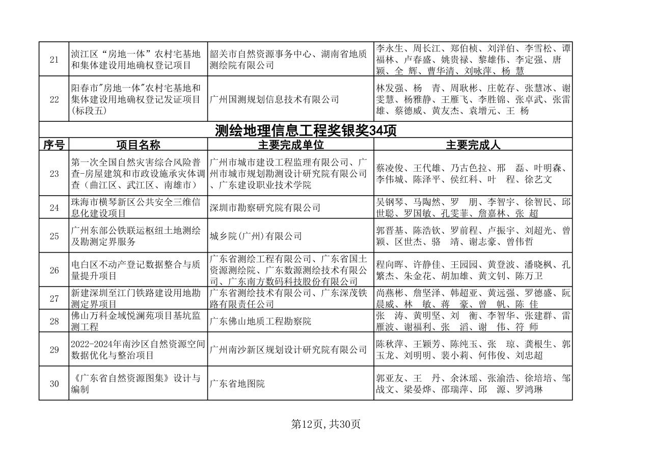 金粤自然资源科学技术奖励办公室根据《关于开展2025年度金粤自然资源科学技术奖评选的通知》(奖励办〔2025〕1号)、《金粤自然资源科学技术奖励办法》有关规定,对申报的141项自然资源科技进步奖、19项自然资源科普奖、39名自然资源青年科技奖、148项测绘地理信息工程奖、174项规划设计成果奖的项目(人选)进行严格审议,秉承客观、公平、公正的原则,推选出自然资源科技进步奖一等奖13项、二等奖20项、三等奖25项,自然资源科普奖一等奖4项、二等奖4项、三等奖5项,自然资源青年科技奖16名,测绘地理信息工程奖金奖22项、银奖34项、铜奖42项,规划设计成果奖金奖23项、银奖30项、铜奖47项。现予以公示(详见附件)。